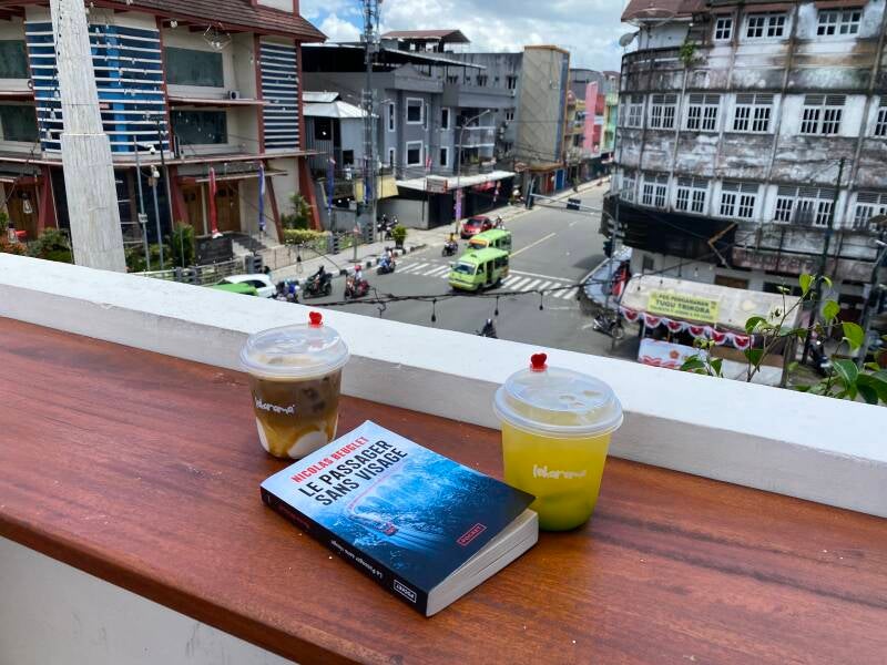 Mais avant de partir d'Ambon nous prenons un dernier Macchiato sur le roof top d'un tout petit bar comme il y en a plein ici.